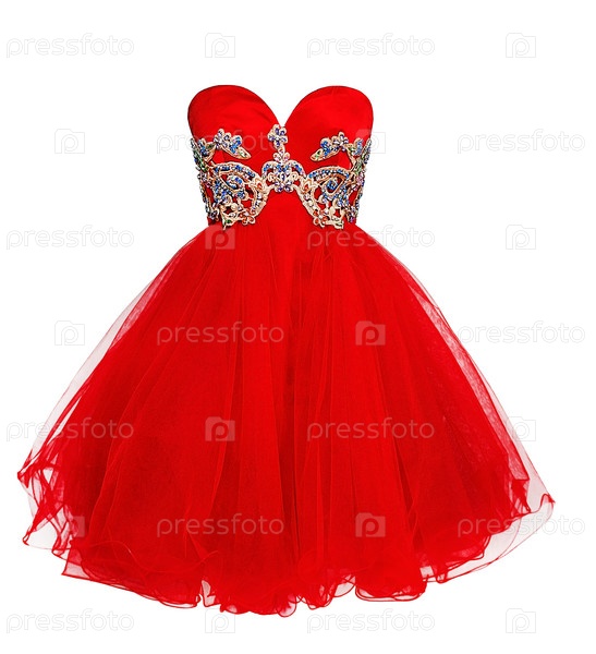 Роскошное вечернее красное платье, украшенное кристаллами и блестками из прозрачной шифоновой ткани на изолированном фоне, модная концепция