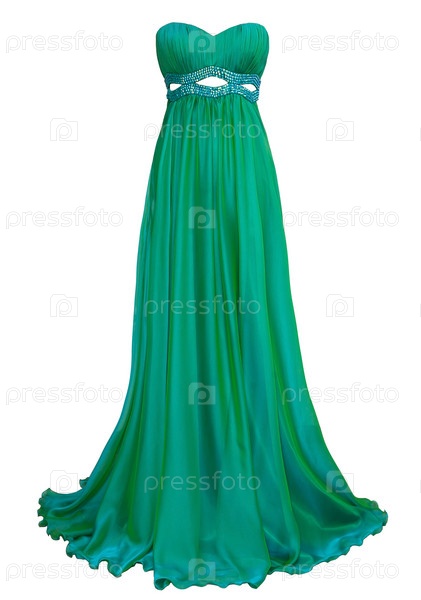 Роскошное вечернее зеленое платье с кристаллами и блестками на белом фоне