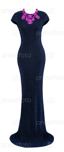 Роскошное вечернее фиолетовое платье из блестящей ткани с бисером на изолированном фоне