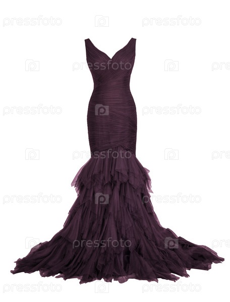 Роскошное вечернее темно-сливовое платье на белом фоне