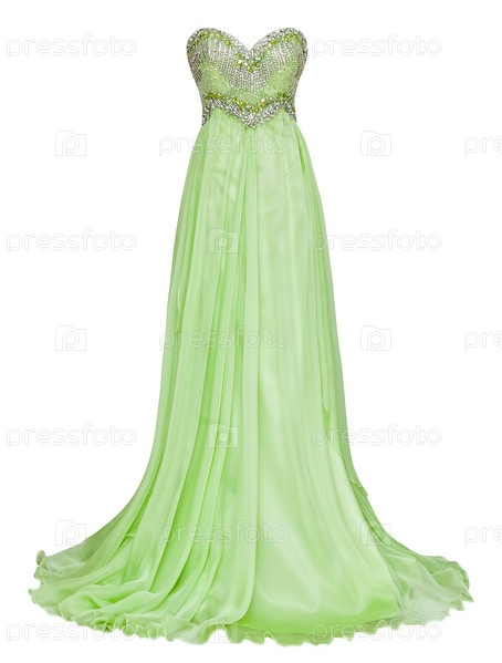Роскошное вечернее зеленое платье с кристаллами, блестками и пайетами на белом фоне