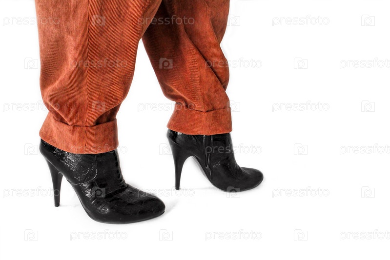 Ноги женщины на каблуках, одетой в брюки и ботильоны
