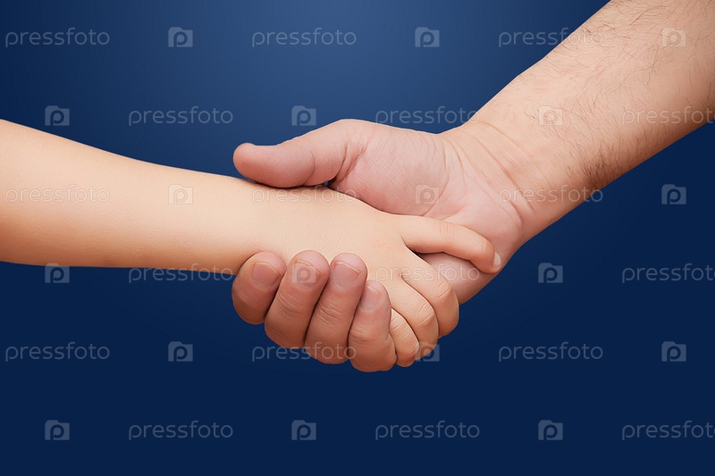 Рука ребенка жмет руку взрослого мужчины