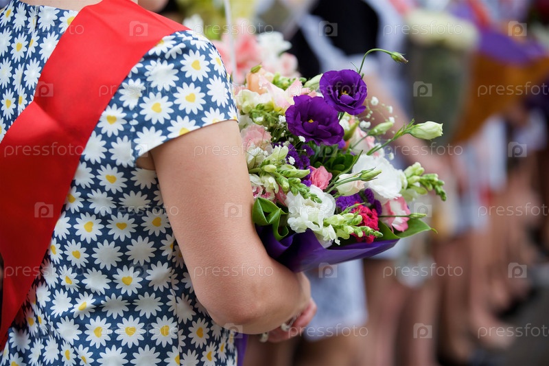 Руки учителя с букетом свежих красочных цветков