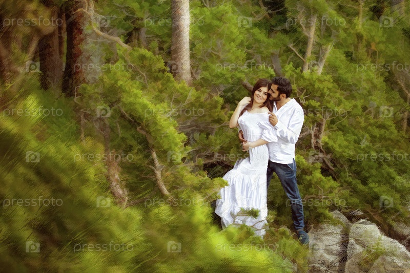 Красивая молодая пара мужчина и женщина находятся на природе