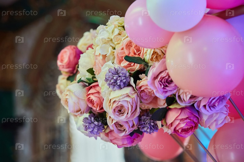 Композиция составлена флористами из живых цветов на вечеринку, свадьбу или торжество