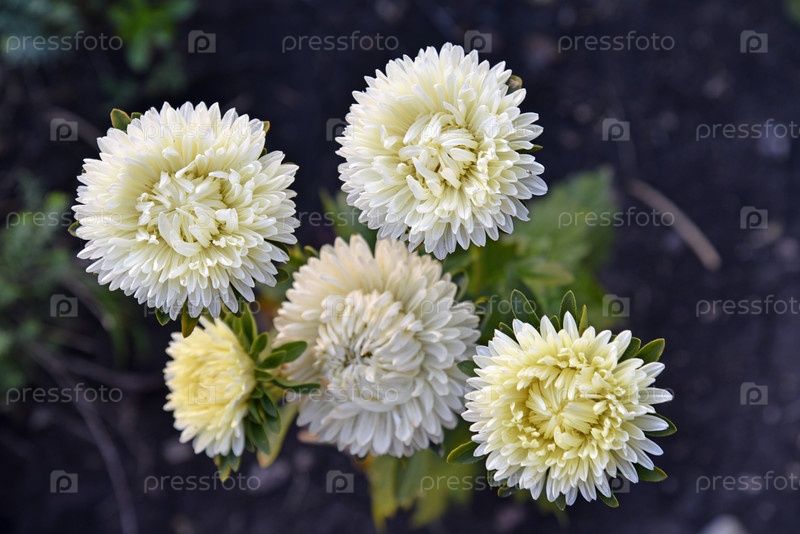 Большие белые цветы астры крупным планом в саду. Крупные белые астры