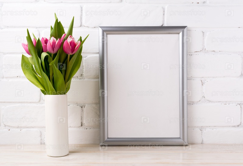 Серебряный макет с розовыми тюльпанами в вазе