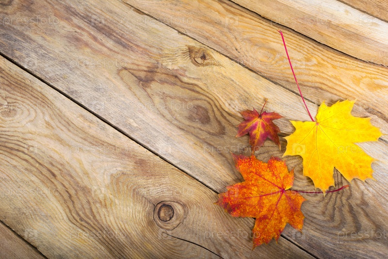 Фон благодарения с тремя осенними кленовыми листьями, пространство для копирования
