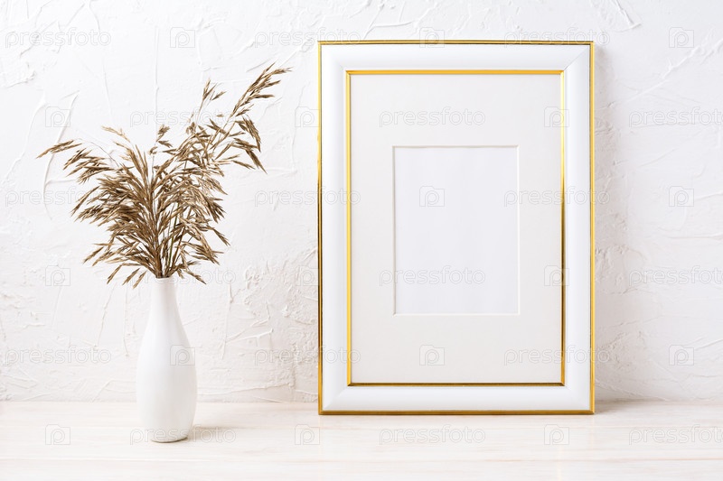 Золотой макет рамки с сушеной травой