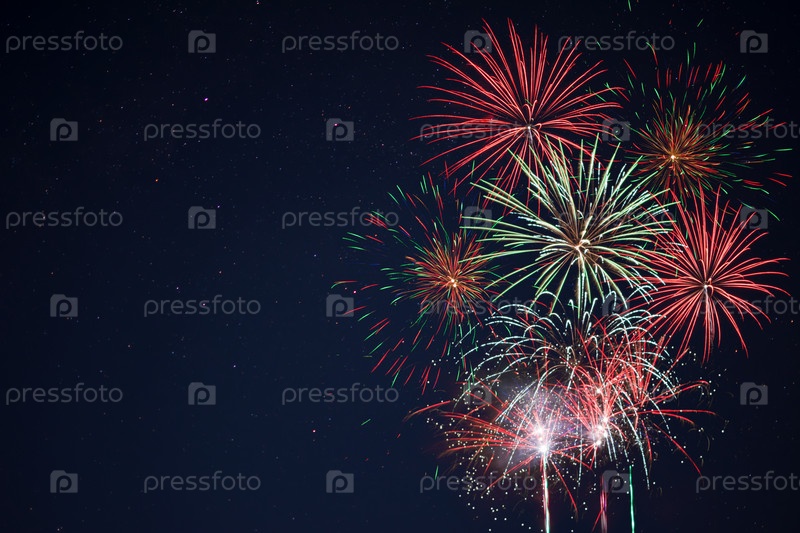 Сверкающий красный зеленый желтый фейерверк