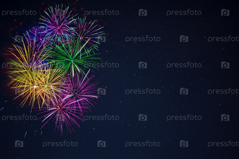 Фиолетовый зеленый желтый синий фейерверк копией пространства
