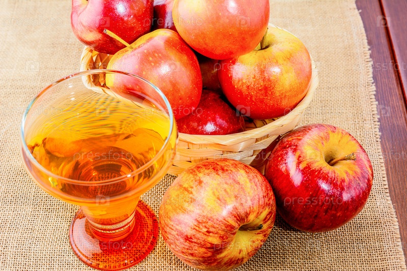 Бокал яблочного сидра и красные яблоки