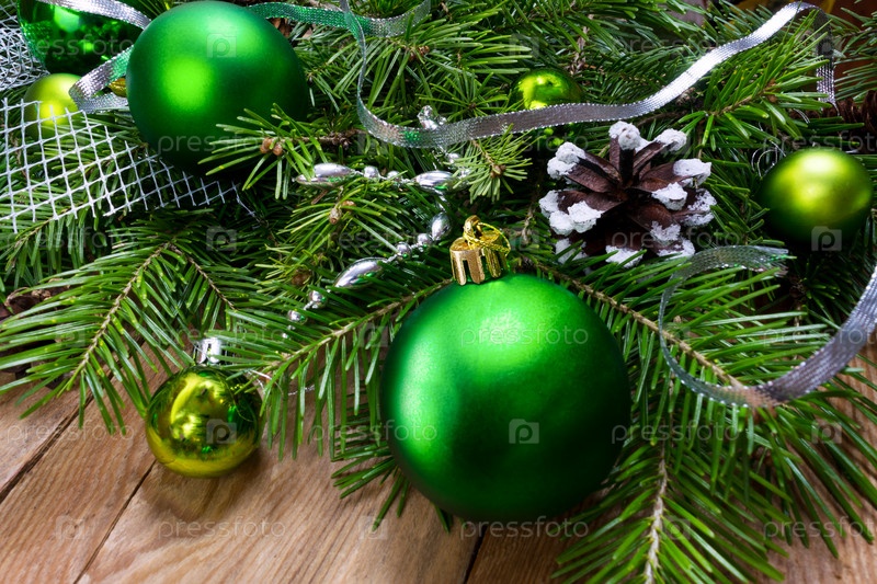 Рождественский зеленый орнамент венок на деревянном фоне, пространство для копирования