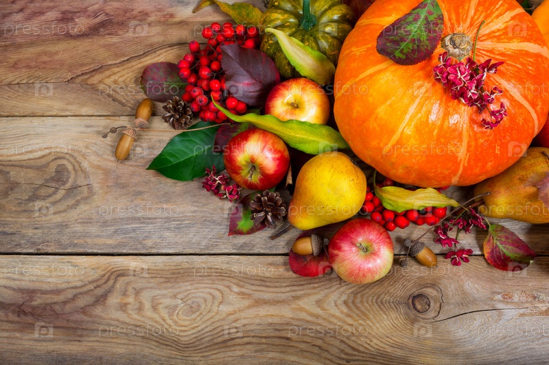 Фон благодарения с тыквой, яблоками, центральной частью грушевого стола