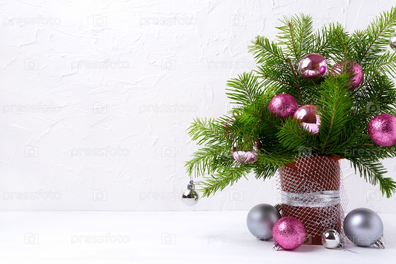 Рождественская центральная часть с розовыми и серебряными безделушками, место для текста