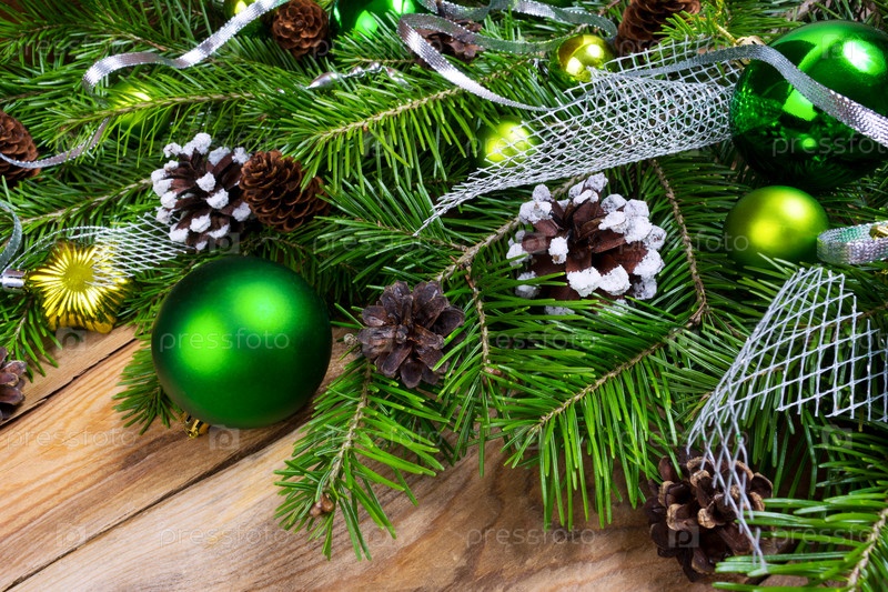 Рождественский праздник приветствие фон с зелеными украшениями