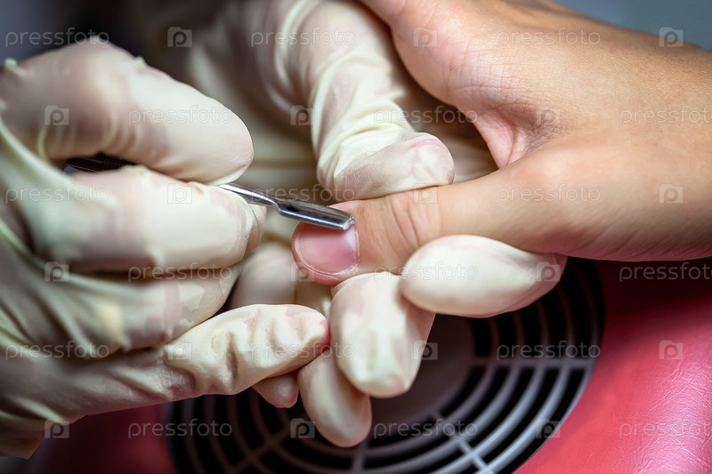 Маникюр. Аппарат удаляет кутикулу. Отодвигание кутикулы от поверхности ногтя