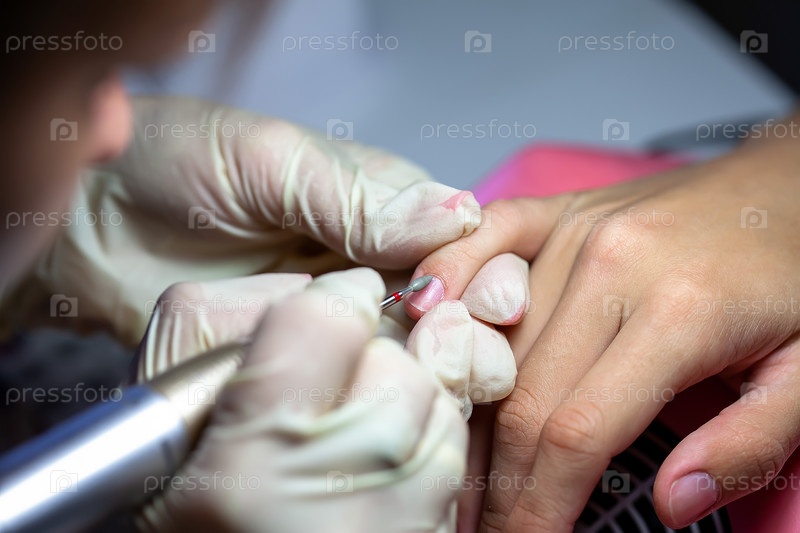Маникюр. Аппарат удаляет кутикулу. Отодвигание кутикулы от поверхности ногтя