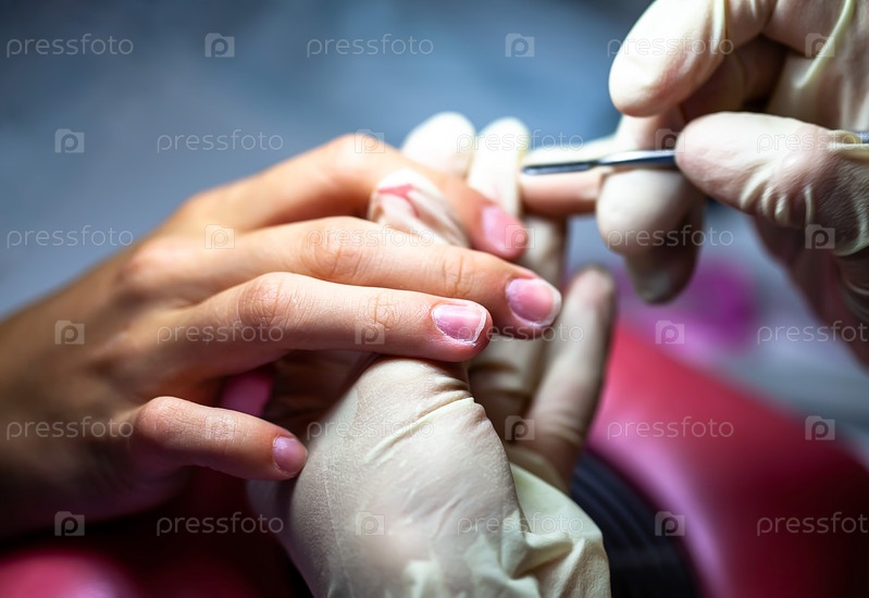 Маникюр. Аппарат удаляет кутикулу. Отодвигание кутикулы от поверхности ногтя