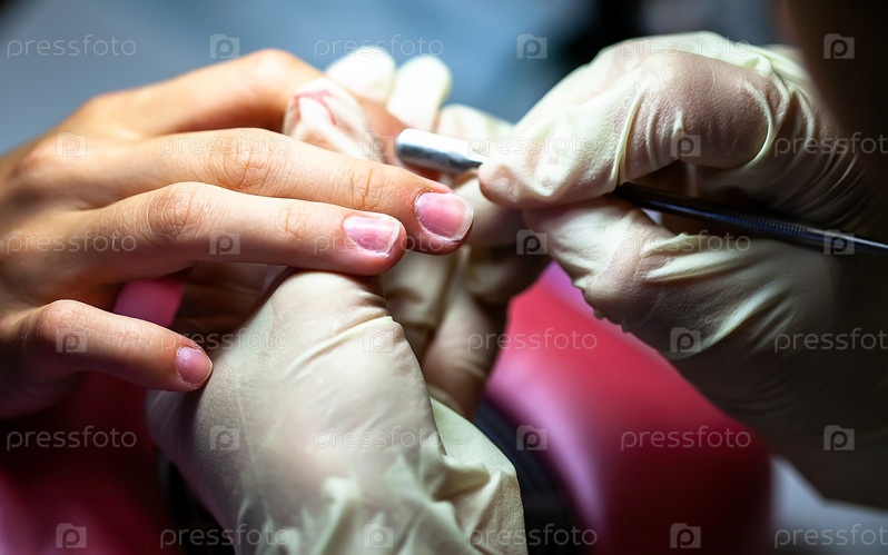 Маникюр. Аппарат удаляет кутикулу. Отодвигание кутикулы от поверхности ногтя