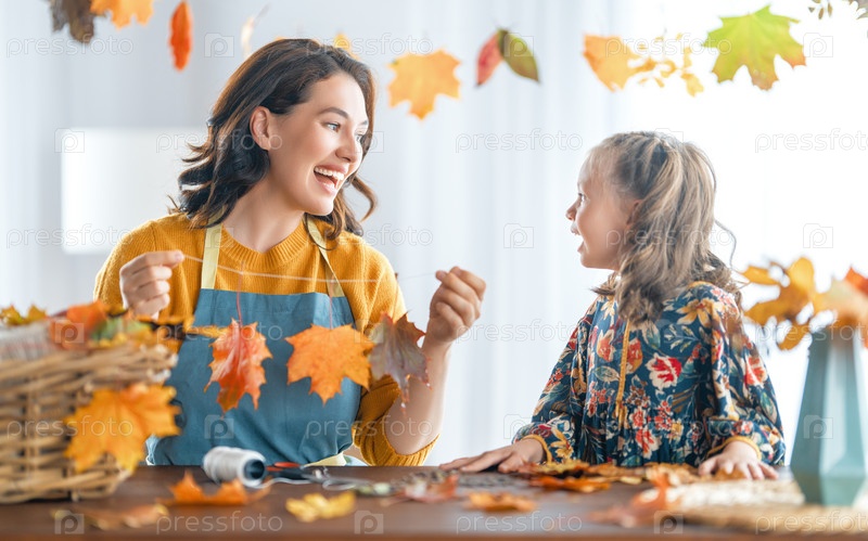 Семья делает осенний декор