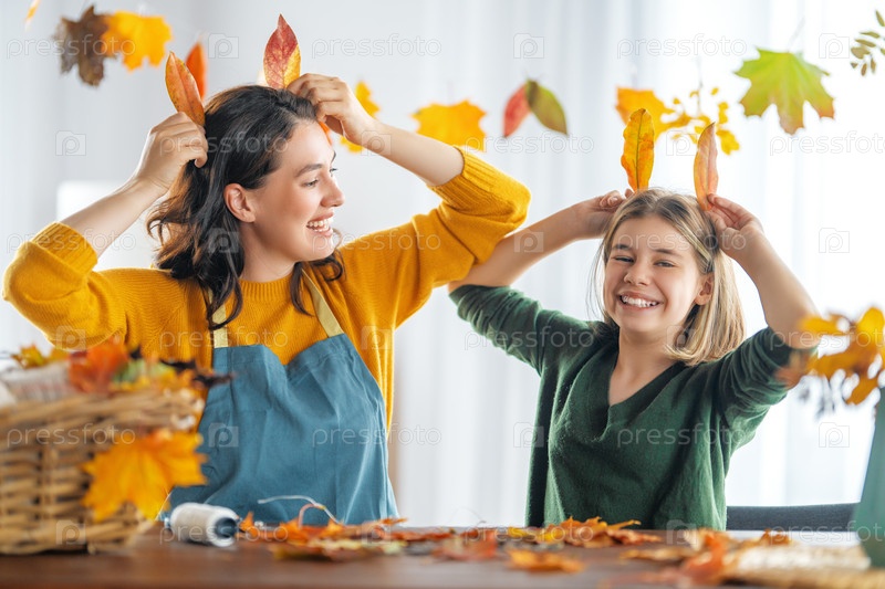 Семья делает осенний декор