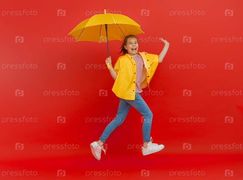 Малыш с зонтиком на цветном фоне