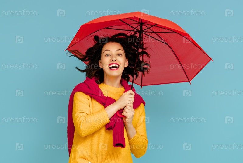 Женщина с зонтиком на цветном фоне