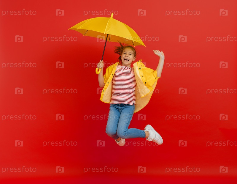 Малыш с зонтиком на цветном фоне