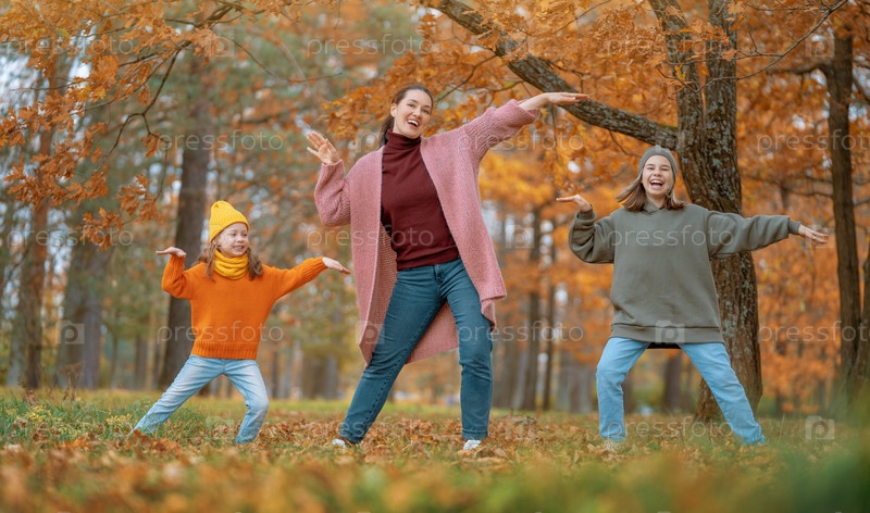 Счастливая семья на осенней прогулке