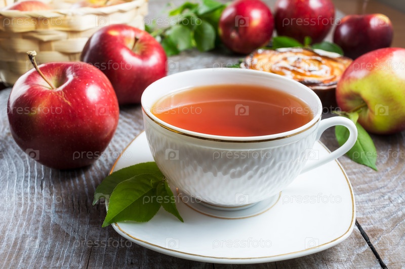 Чашка травяного чая и яблочный пирог