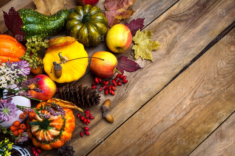 Фон благодарения с красными ягодами, тыквой и сквошем, пространство для копирования