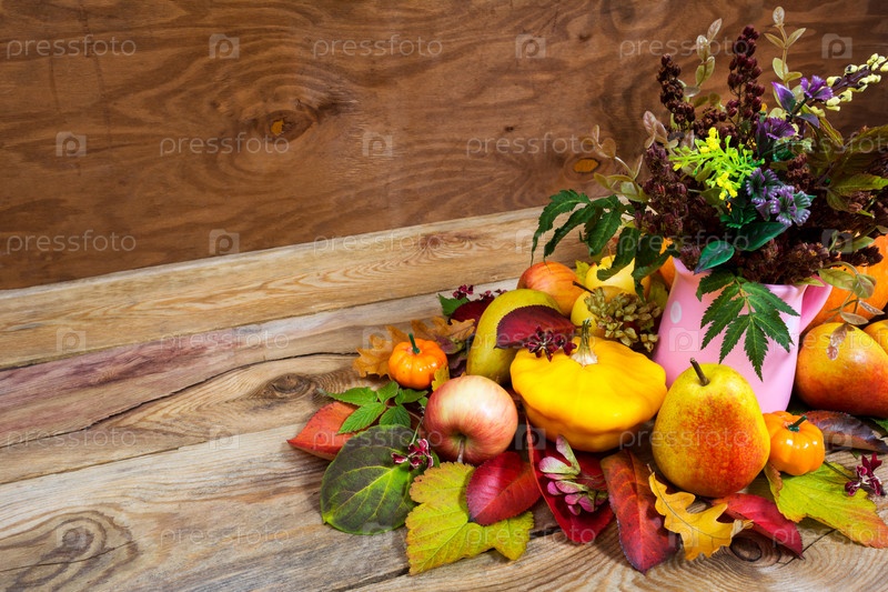 Деревенская осенняя композиция с дикой травой в розовой вазе-кувшине