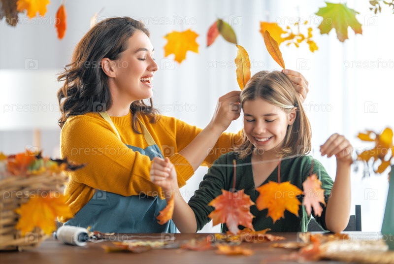 Семья делает осенний декор