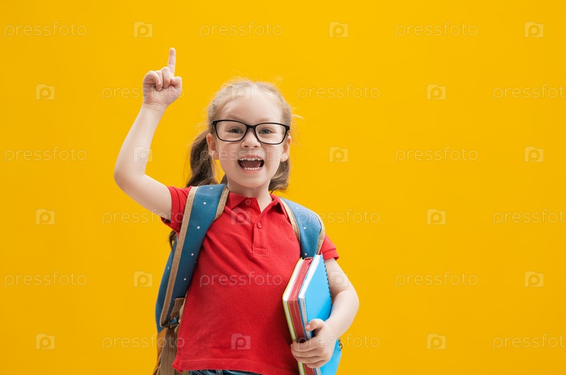 Малыш с рюкзаком на цветном фоне