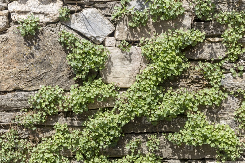 Фон старый, серый, каменная стена с растением