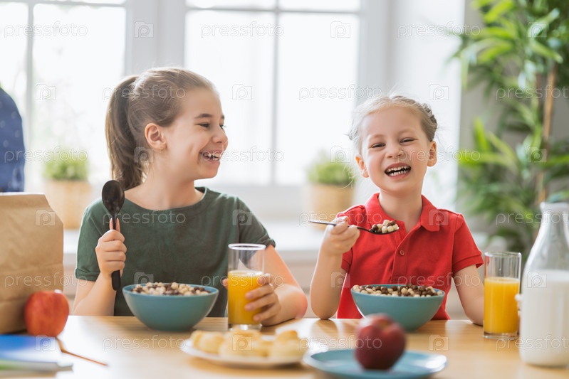 Счастливые дети завтракают