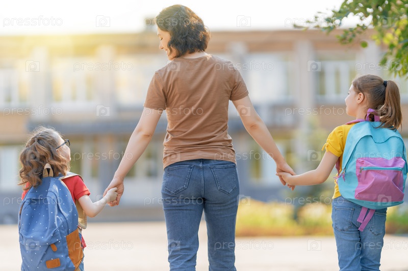 Родители и ученики идут в школу