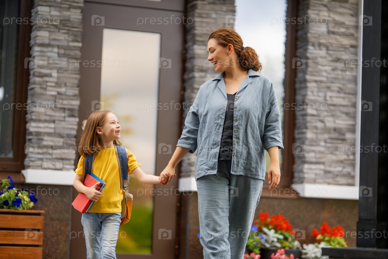 Родитель и ученик идут в школу