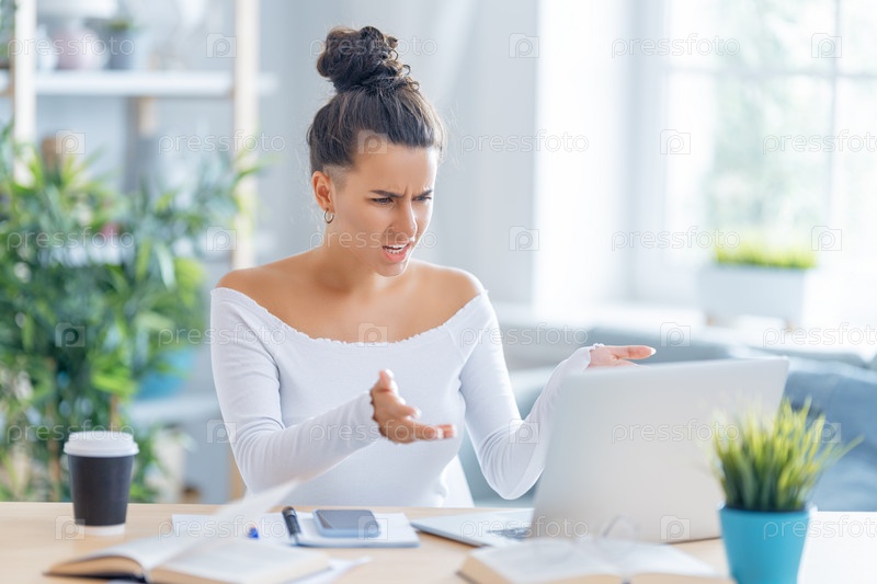 Женщина работает на ноутбуке дома