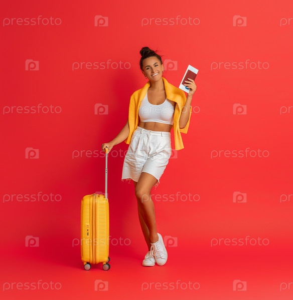 Счастливая женщина собирается путешествовать