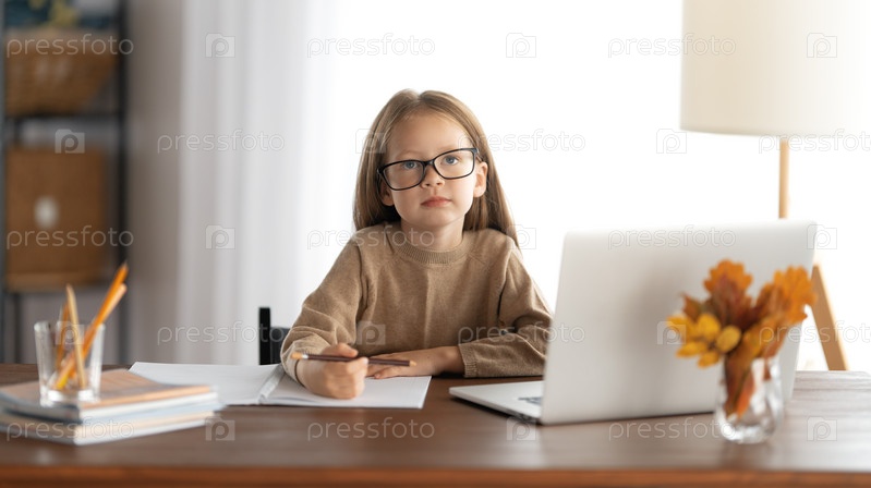 Девушка делает домашнее задание или онлайн-образование