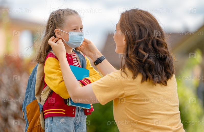 Родители и ученики идут в школу