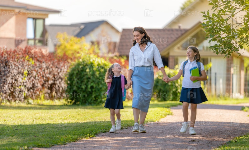 Родители и ученики идут в школу