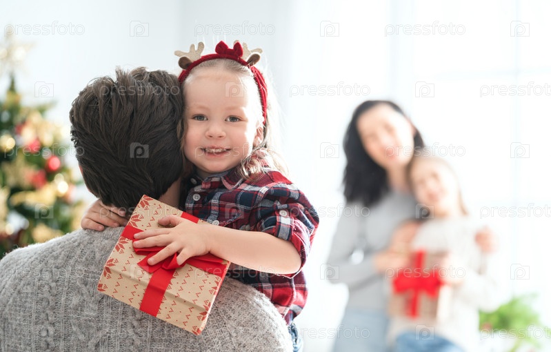 Семья празднует рождество