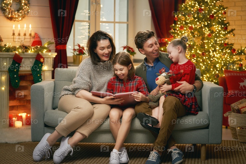 Семья возле елки