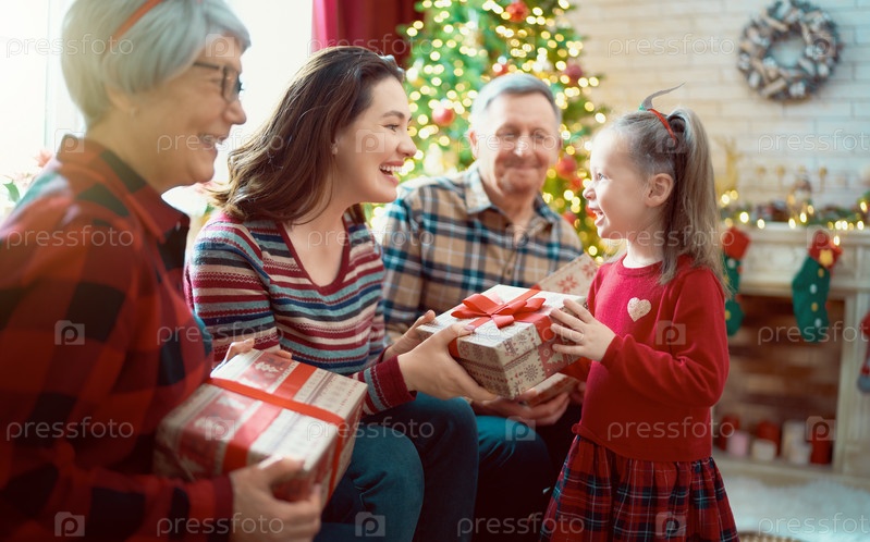 Семья празднует рождество