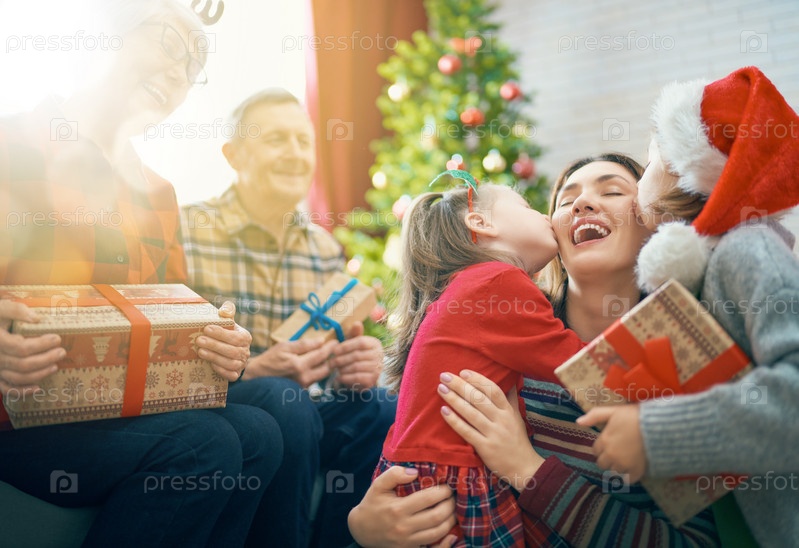 Семья празднует рождество