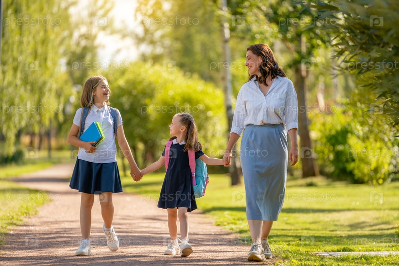 Родители и ученики идут в школу